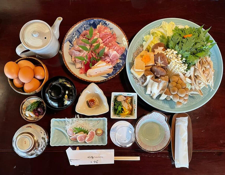 自社で飼育している京都府認定ブランド「京地どり」の京地鶏すき焼きをご提供しております。